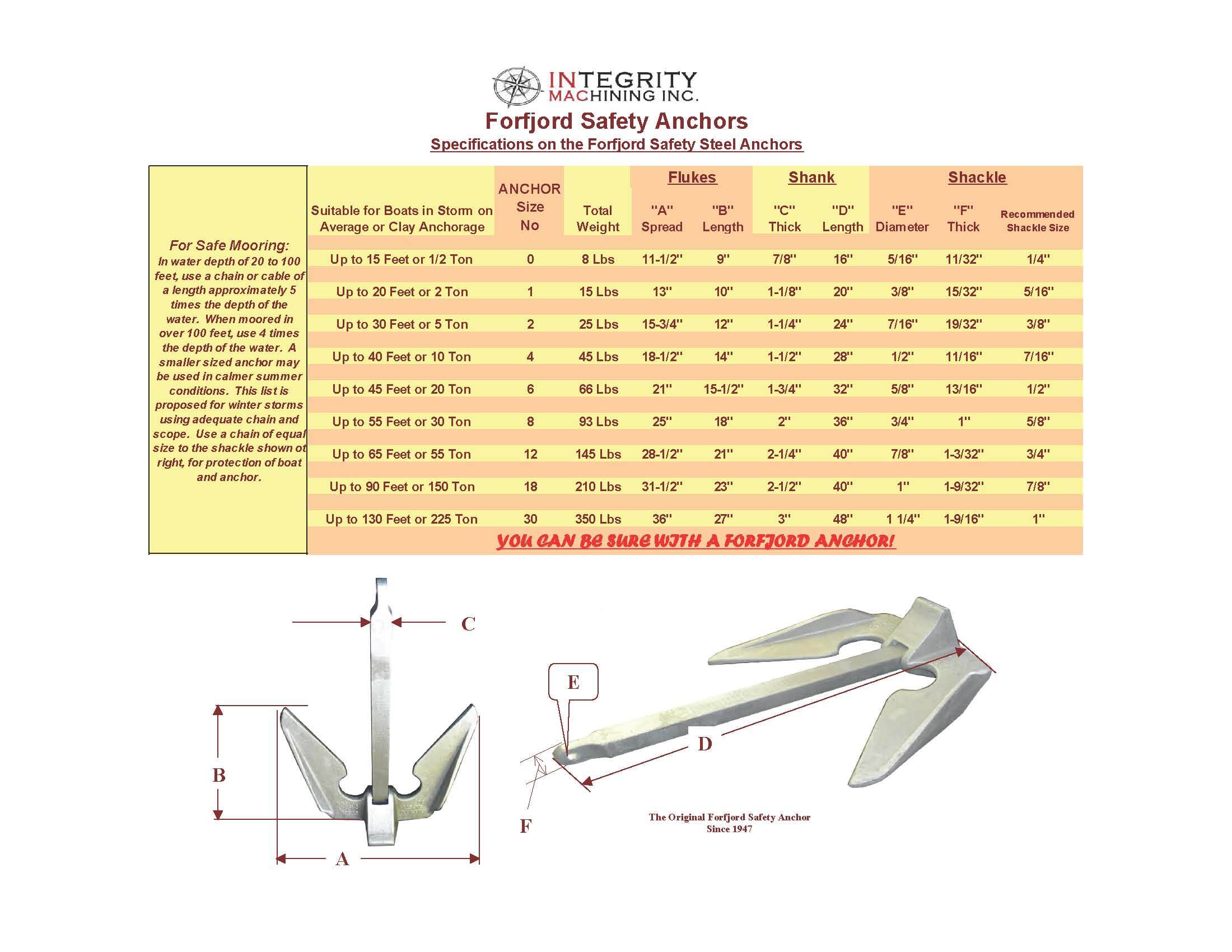 Forfjord Anchors have been known as the world's finest design for over 70 years. Made in the USA using the finest steels, this anchor has proven to hold when others twice the size have failed. Each anchor is hand built by skilled craftsmen with vast commercial fishing equipment backgrounds. Our vessel anchors have been the choice of Alaskans for many years, the Fish and Wildlife Service, and Canadian Fisheries as well as the BC Coastguard. We are the choice of the Alaskan Coast Guard 40 foot patrol boats also. If you own a yacht and demand the best, we would be your logical choice. We produce America's Premier small anchors which will hold under the worst weather conditions any good boatman strives to avoid. Our anchors are the choice of Pacific Coast fisherman, yachtsmen, and all who ply Alaskan waters including the U.S. Coast guard. They are now on the Great Lakes, East Coast and the Gulf of Mexico as well as other places in the world. Our largest anchor is equivalent to a 700 pound Navy or Danforth style pick, and yet weighs half the amount the others do. Made in the USA since 1947 with well over 30,000 units sold worldwide.